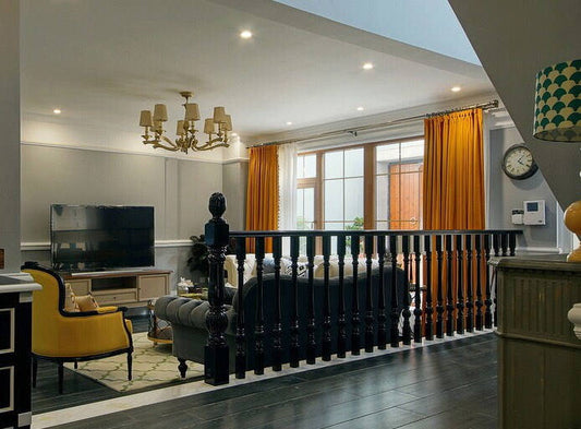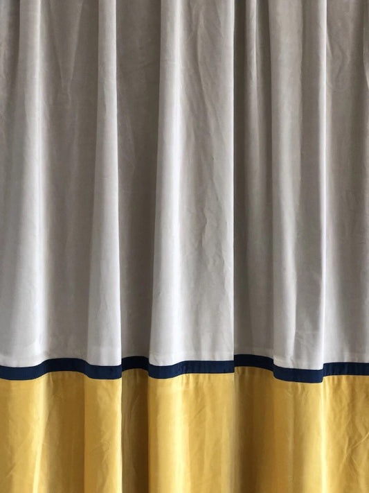 Mist White and Canary Yellow Color Block Matte Velvet Custom Curtain