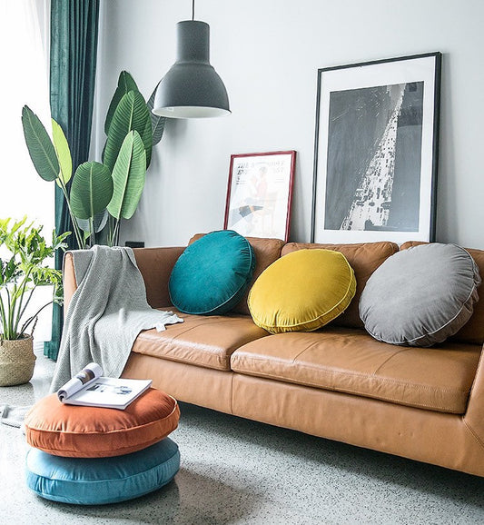 Lemon Yellow with White Piping Velvet Round Pillow Cover
