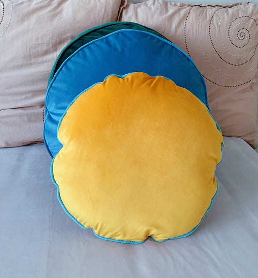 Honey Yellow with Blue Piping Velvet Round Pillow Cover